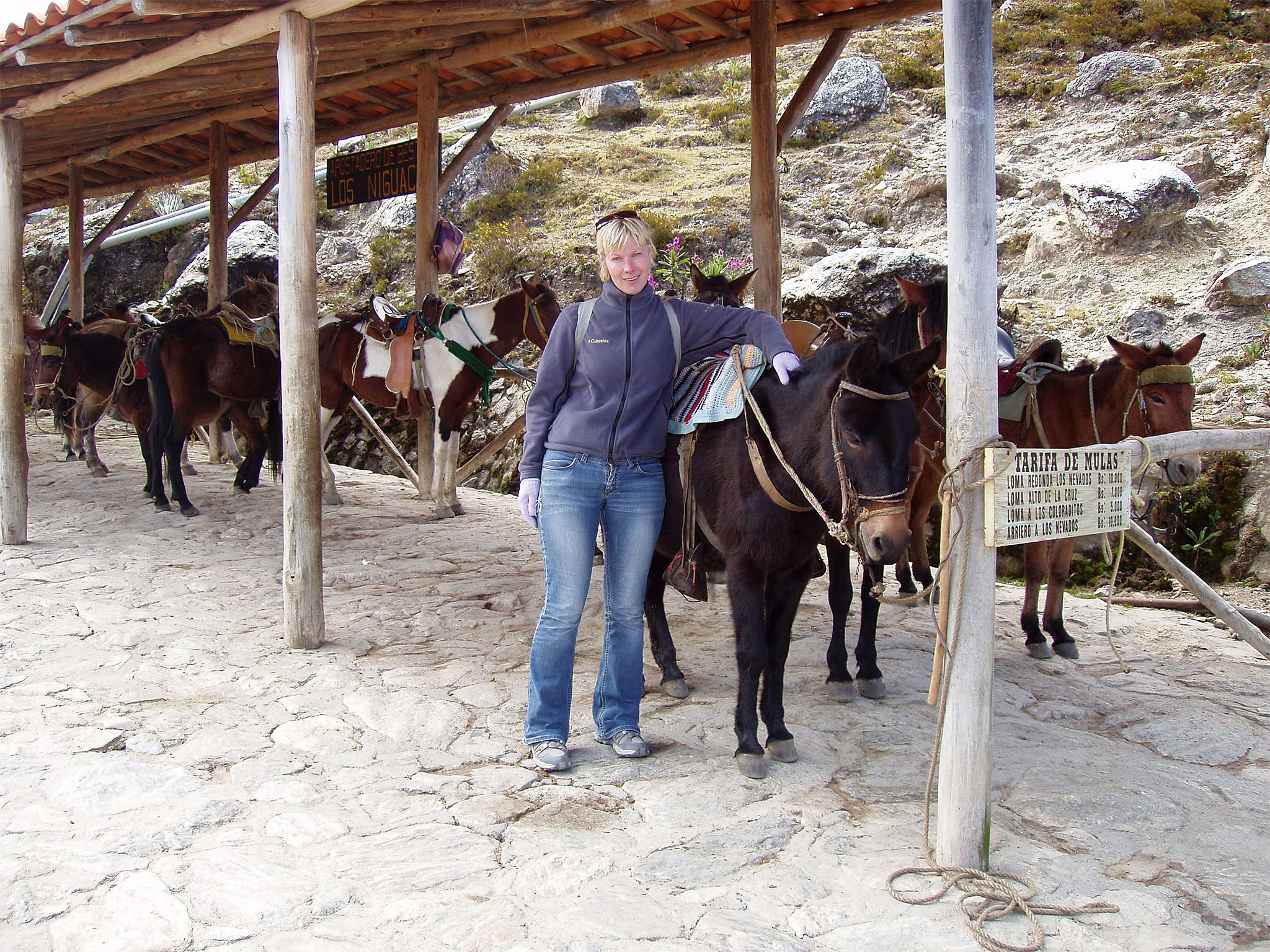 [heiti] Hommikul ärkasime kell seitse, et varakult teleféricoga üles, Pico Espejo otsa sõita. Kell 8:30 oleme teleférico (maailma kõige pikem muuseas) juures, ostsime piletid ja natukene peale üheksat alustame sõitu. Ei saa mainimata jätta, et maare, nagu tal juba kombeks, ostab endale soojalt maalt villased kindad. Märkuseks: Kas teate, kust on pärit mäetipu nimi, Pico Espejo (Peegli mäetipp)? Nimelt leidub seal teatud sorti kive, mida kutsutakse Mica Moscovita ja mis on väga heledad ja kui päike paistab neile, siis nad peegelduvad nagu peegel.