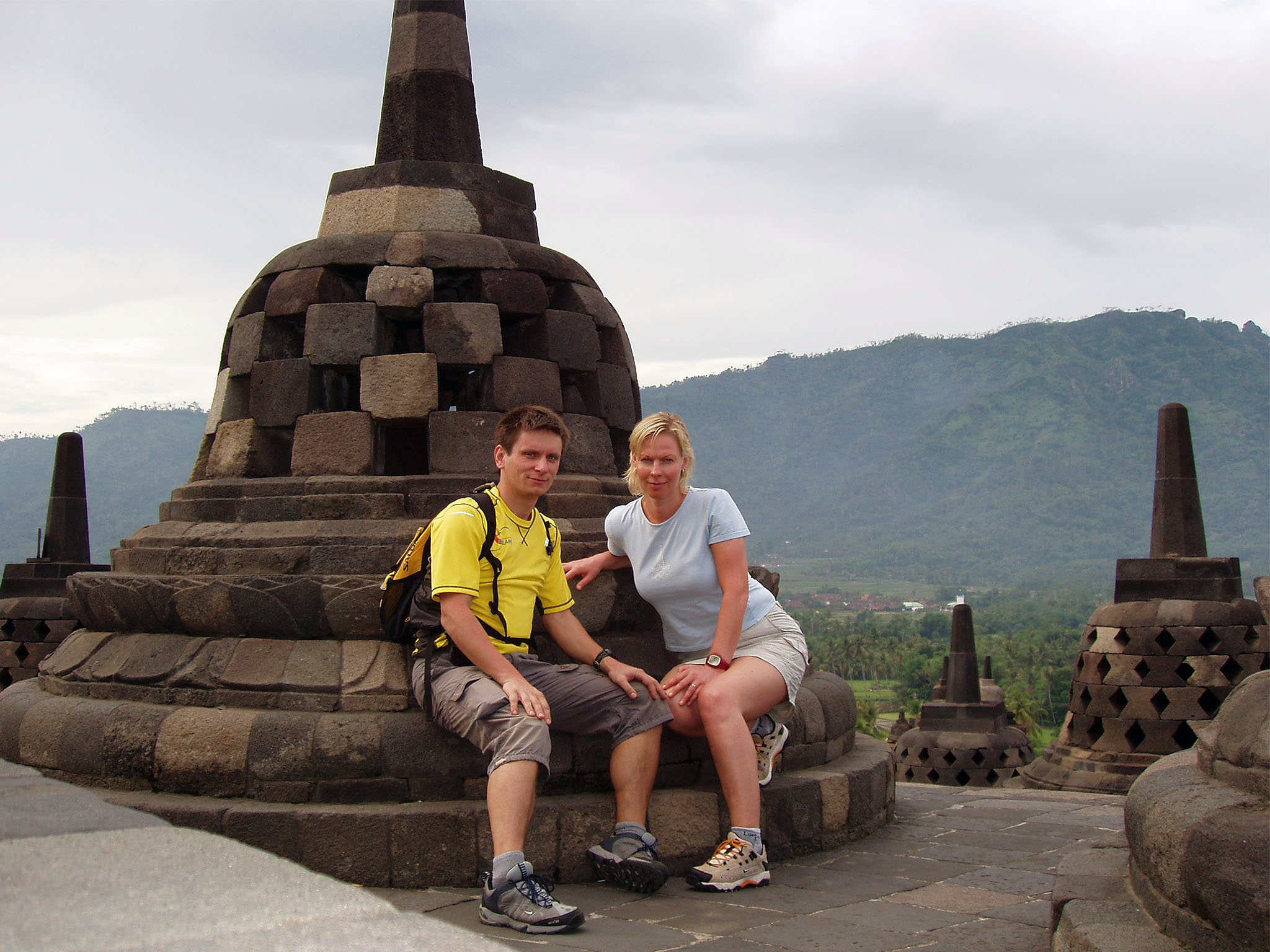 Ahjaa ... Borobuduri ees juhtis Maare minu tähelepanu ühele tõeliselt lühikeses seelikus tüdrukule, et näe, käiakse ka sellisega ... templis selgus, et seda tüdrukut teenindas venekeelne giid :). Kõndisime nendega veidi kaasa ... oli ikka väga naljakas kuulata Indoneeslast rääkimas vene keeles.