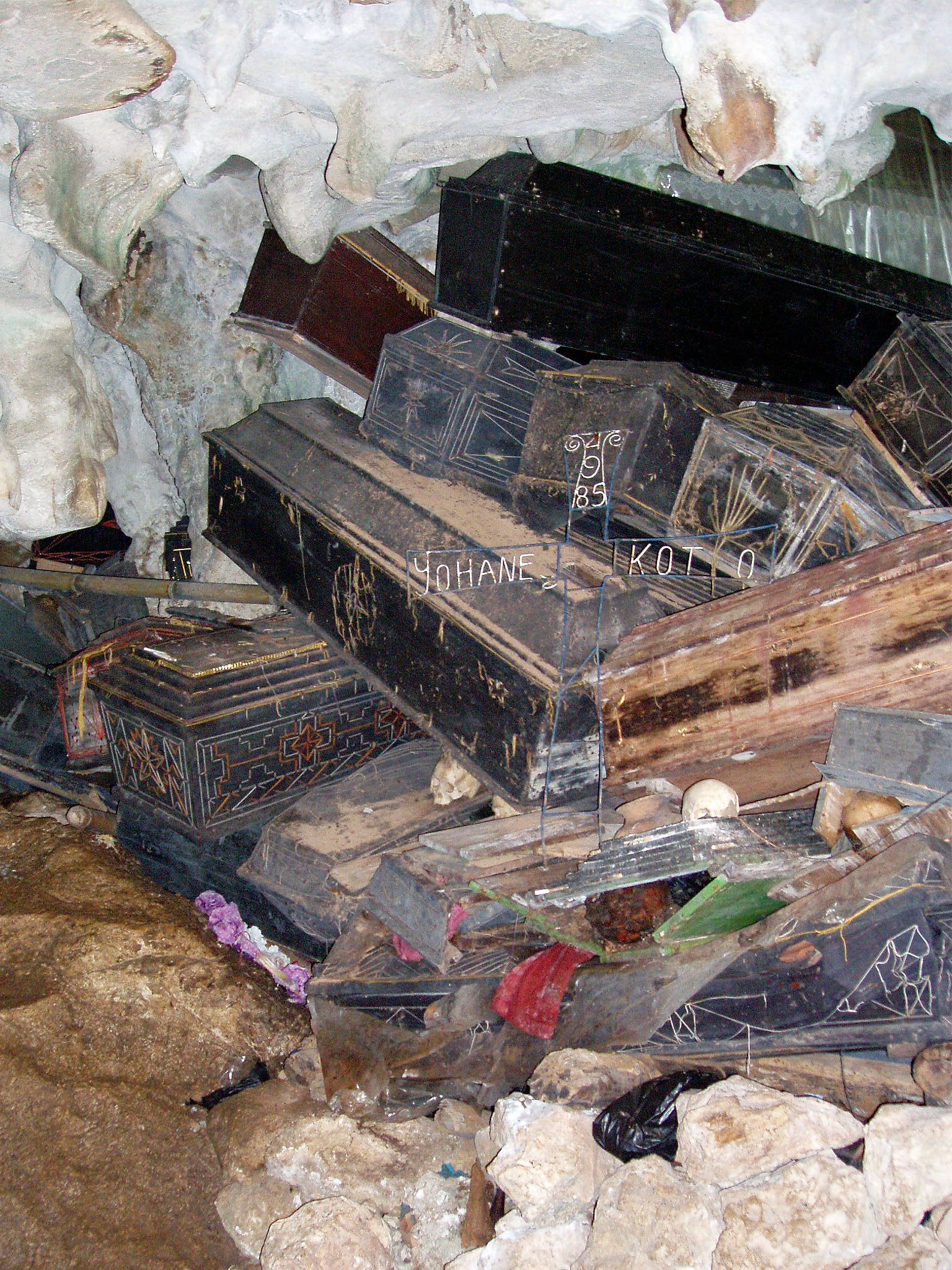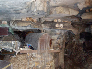 Käik on nii kitsas, et kohati saab liikuda ainult käpuli, seljakotti lükkan enda ees. Paarkümmend meetrit hiljem jõuamegi järgmisse koobastusse. Giid juhatab meid veel mingit haru mööda koobastesse, kus pole küll kirste, aga on selle-eest peopesa suurused ämblikud ja nahkhiired.