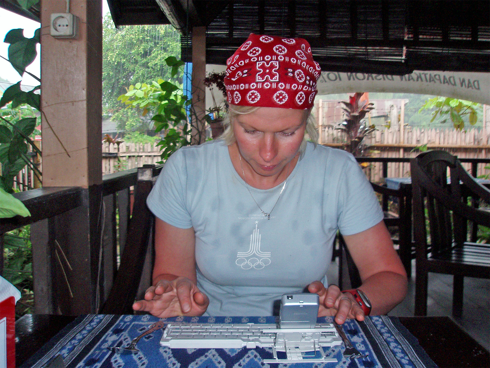 Läheneme vaikselt Rantepaole kui Heiti arvab, et peaksime ronima tee äärde jääva mäe – buntu Sinki – otsa ja heitma ülalt pilgu linnale. Mina teatan ausalt, et pole sellest ideest väga suures vaimustuses aga noh kui väga järsk rada ei ole, teeme ära. Tee läheb otse mäe jalamilt läbi ning siis ei tundugi mägi enam kõrge – siia otsa võin minna küll. Otsime rada, mis aitaks meid üles ja püüame kohalike koolilaste käest teed küsida. „Hello misteritama„ on nad küll meistrid aga teed ei oska juhatada. Ronime üles mingitest astmetest kuid see tee viib kellegi hoovi. Laskume uuesti alla kui äkki tunnen pealael kahtlast kipitust – puu varjus tuvastab Heiti, et olen ära kõrvetanud oma pealae – see on juuksejuurte juurest tulipunane ja tunnen seda kuumavat. Sellist asja ei ole varem juhtunud. Nüüd saan aru, miks hollandlased käskisid peakatet peas hoida. Selge on, et rohkem me mäe otsa ei roni ja läheme üsna kähku nüüd linna – esmalt ostame mulle rätiku pähe ja siis juba tuttavasse kohta sööma. Külm jook ja kuum söök aitavad veidi, aga ikka on üsna rambe olla. Taevasse aga koguneb igapärastlõunaseid vihmapilvi ja see teeb olemise kergemaks. Käime veel paaris poes ja ringiga läbi turult – kust ostame ka kohalikke snakefruite – et lihtsalt maitsta, mismoodi see kentsaka välimusega vili siis ka maitseb. Vihma hakkab sadama ja otsime selle eest varju oma hotelli teeotsas olevast restoranist – kohv, papaiamahl ja puuviljakokteil on suurepärased.