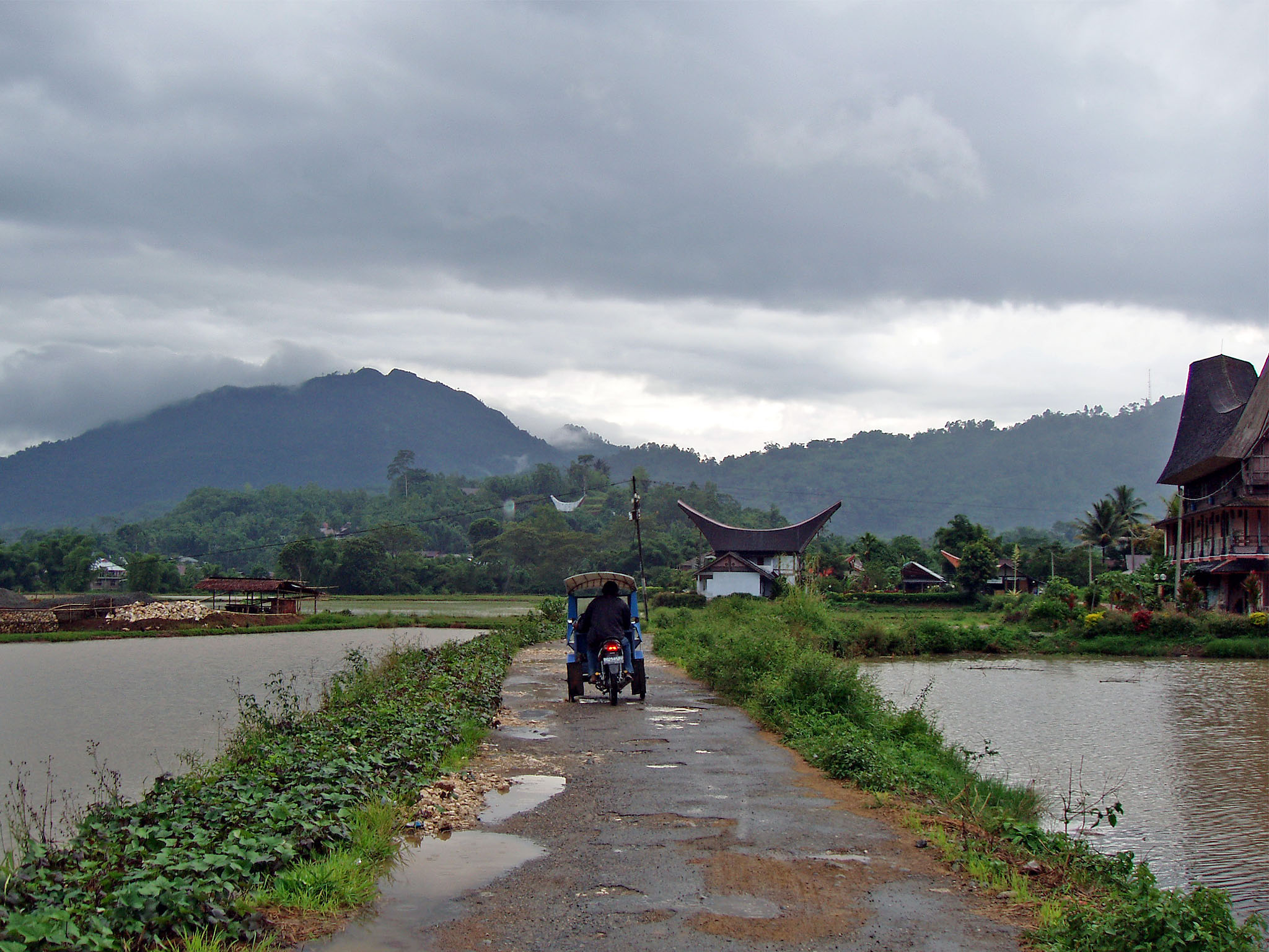 [maare] kuigi tänav, mida mööda kõnnime, ei ole suurest teest kaugel ning kulgeb paralleelselt Rantepao suunas, on siin hoopis mõnusam kõndida. Bemosid ja motikaid on tunduvalt vähem ja see tähendab ka kõrvadele puhkust pidevast signaalitamisest. Et on palav, siis varume endale aegsasti vett, et mitte korrata eilset – kus ülesmäge matkates pidev veepuudus vaevas, sest olime tulnud ilma varudeta teele. Siin aga on iga nurga peal poe moodi putkasid, kus tühjad pudelid jälle täis pudelite vastu vahetada saame.