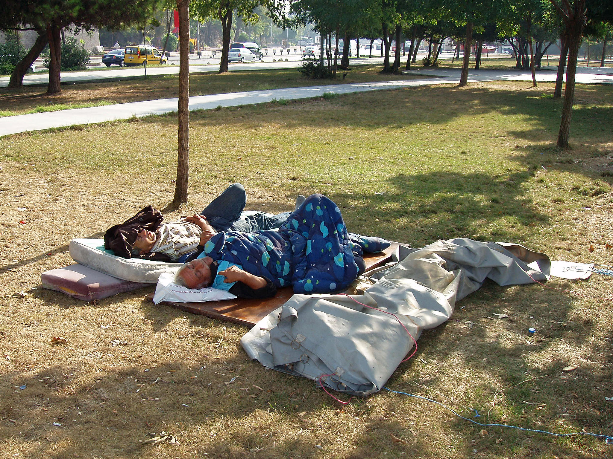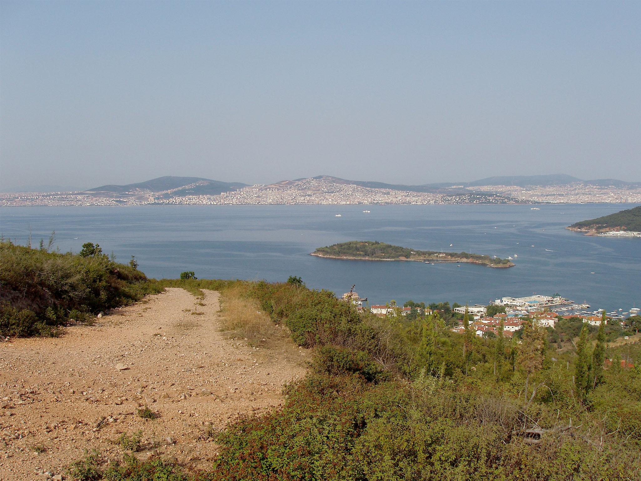 Saarel oleme ühtekokku 3 ... 4 tundi, siis tuleb õhtu ka juba ja hakkame tagasi minema. Viime rattad Robinsonile ära ja tingime natuke veel hinna üle. Tegelikult oleks võinud rattad ka vabalt sadamasse jätta, oleme aga ausad nagu eestlased kunagi :). Sadamas proovime kohalikku kiirkebabi – st. seda, kus liha ja salat pannakse saia vahele. Täitsa maitsev on. Joome õlut ja valget veini kõrvale. Laeval võtame kohad sisse uksel (Euroliidus sellist asja küll ei tohiks teha!) ja kõlgutame jalgu mere kohal. Niimoodi on mõnus ja ei ole palav. Sadamast trammiga tagasi kesklinna, tuttavasse Havuzbaşi baari, kus sõbralikule kelnerile jätsime ka welcome-to-estonia kaelapaela ning siis põhku :). Homme läheme otsime Heybeli ja need ilusad rannad üles.