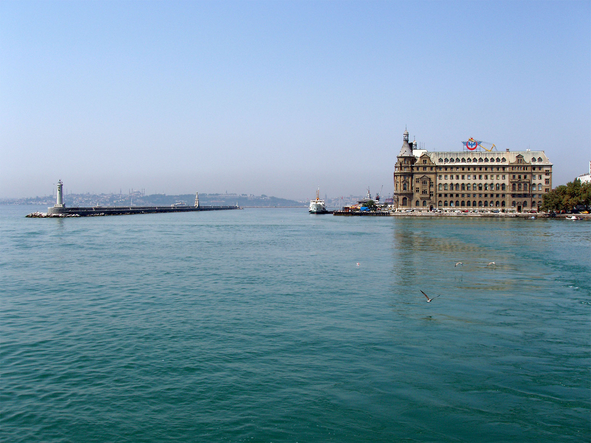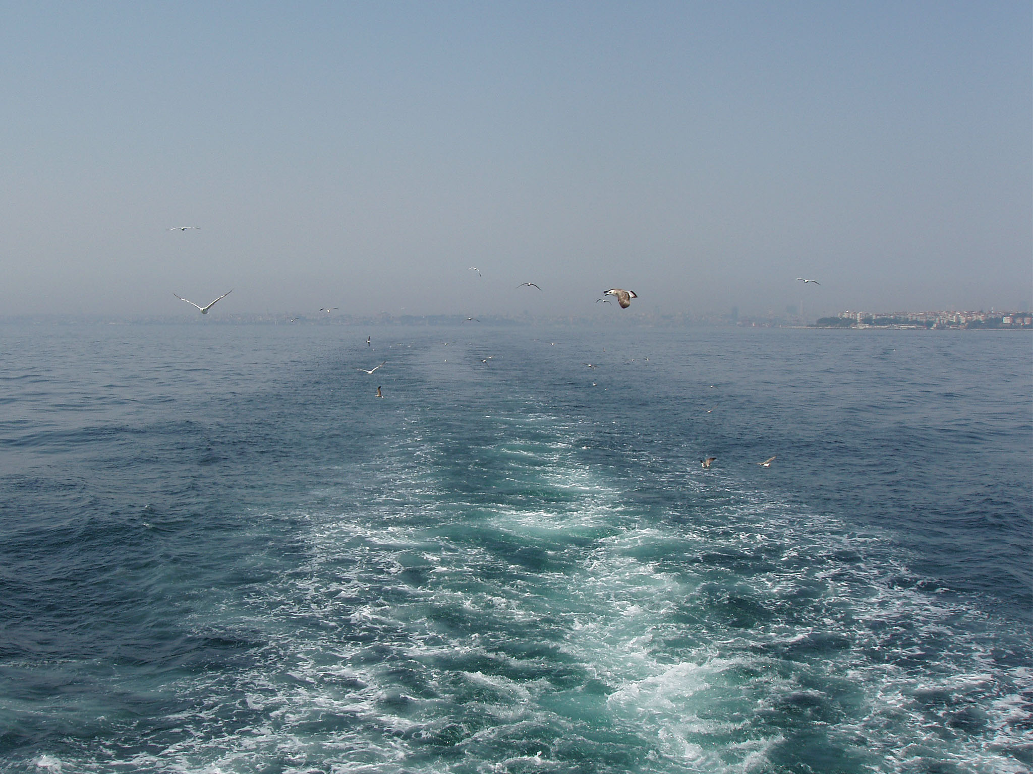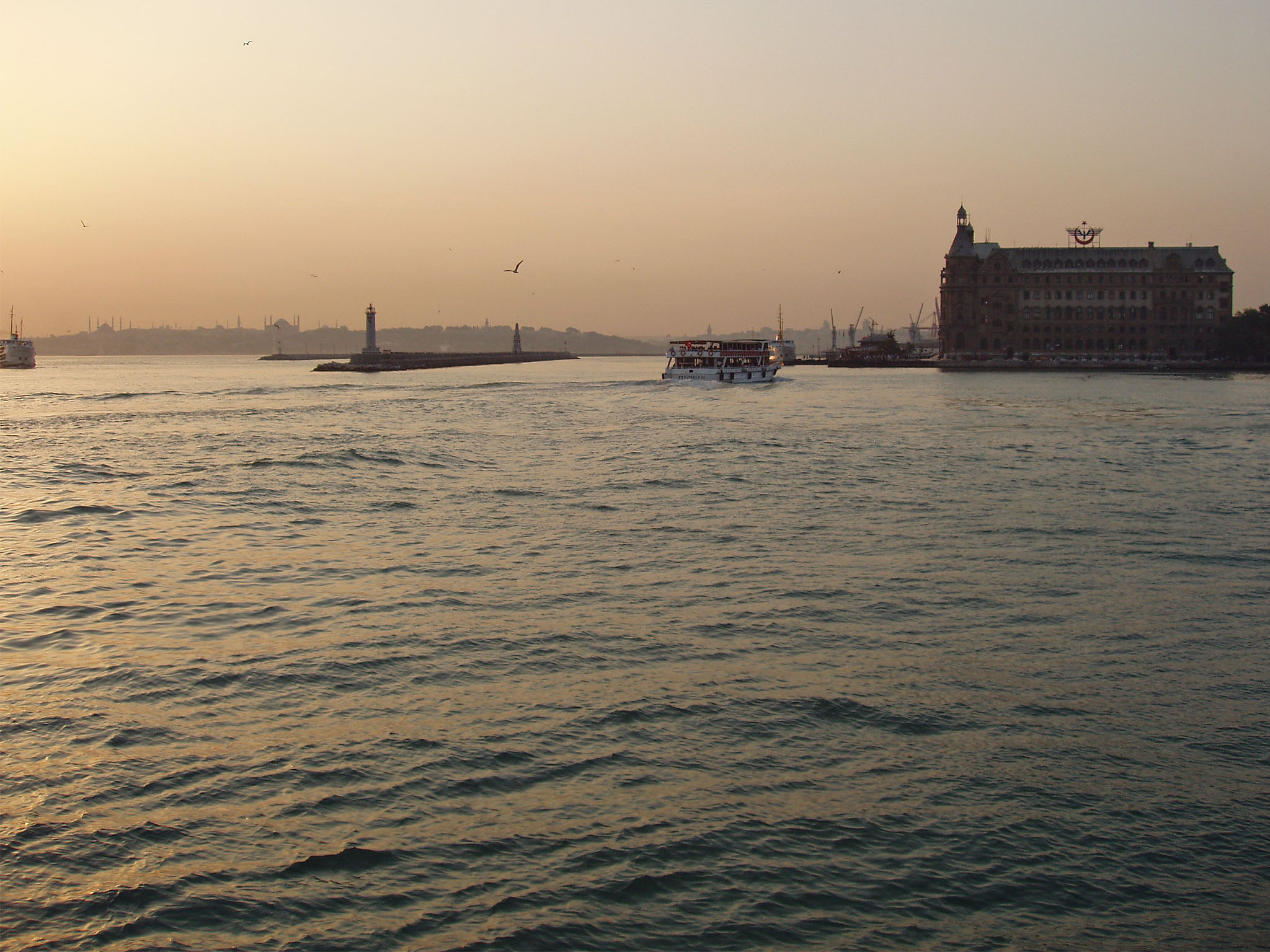 [maare] Kabatas, see on sama koht, kus funikulöör üles Taksimi läheb. Meie seekord suundume teisele poole ja leiamegi end peagi kohast, kus laevad lähevad. Ostame piletid (õigemini žetoonid) ja istume kohvikusse aega parajaks tegema, sest laevani on peaaegu tund. Kohvikus selgub, et kõrval on kohe veidi kiiremate laevade sadam, kust parasjagu laev just väljub. Kahetseme, et oleme teisele laevale juba piletid ära ostnud. Siis me veel ei tea, et tegelikult saab väga lihtsasti ostetud žetoonid jälle kassas rahaks vahetada.