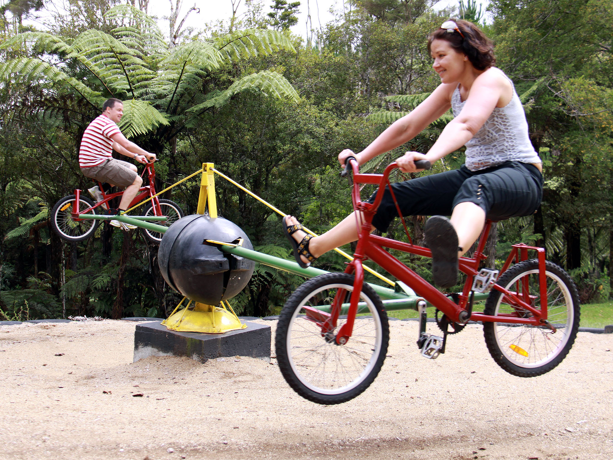 Siis Waiau Waterwork. Sissepääsu eest küsitakse 15 dollarit aga tagantjärele tarkusena pole seda ka kahju maksta. Park meenutab mingil moel meie AHAA keskuseid, erinevaid atraktsioone on seal valmistatud nii lastele kui suurtele, kasutades vee jõudu ja käepärast olnud vahendeid: vanu jalgrattaid, WC potte, keedupotte, panne, vanu jalatseid jne. Väga lõbus park, just kohane ju Heiti 39. sünnipäeva pidamiseks. Igastahes läheme päris hoogu, olgu siis flying foxi ehk ahviraudteega läbi põõsaste kihutades, veesõda mängides või papist laevukestega võidu kihutades. Jaa, väga tore park, lihtsate vahenditega oli palju saavutatud, lisaks veel piknikupaigad koos tasuta gaasigrillidega (nagu paljudes siinsetes motellideski), ujumiskohtade ja atraktsioonidega. Lisaks elavad pargis veel sõbralik koer, suur siga, pardid ja haned, kes julgesti süüa norivad (ühe dollari eest saab neile sööta osta) ja laamad. Tervele perele koos lastega tegemist palju.
