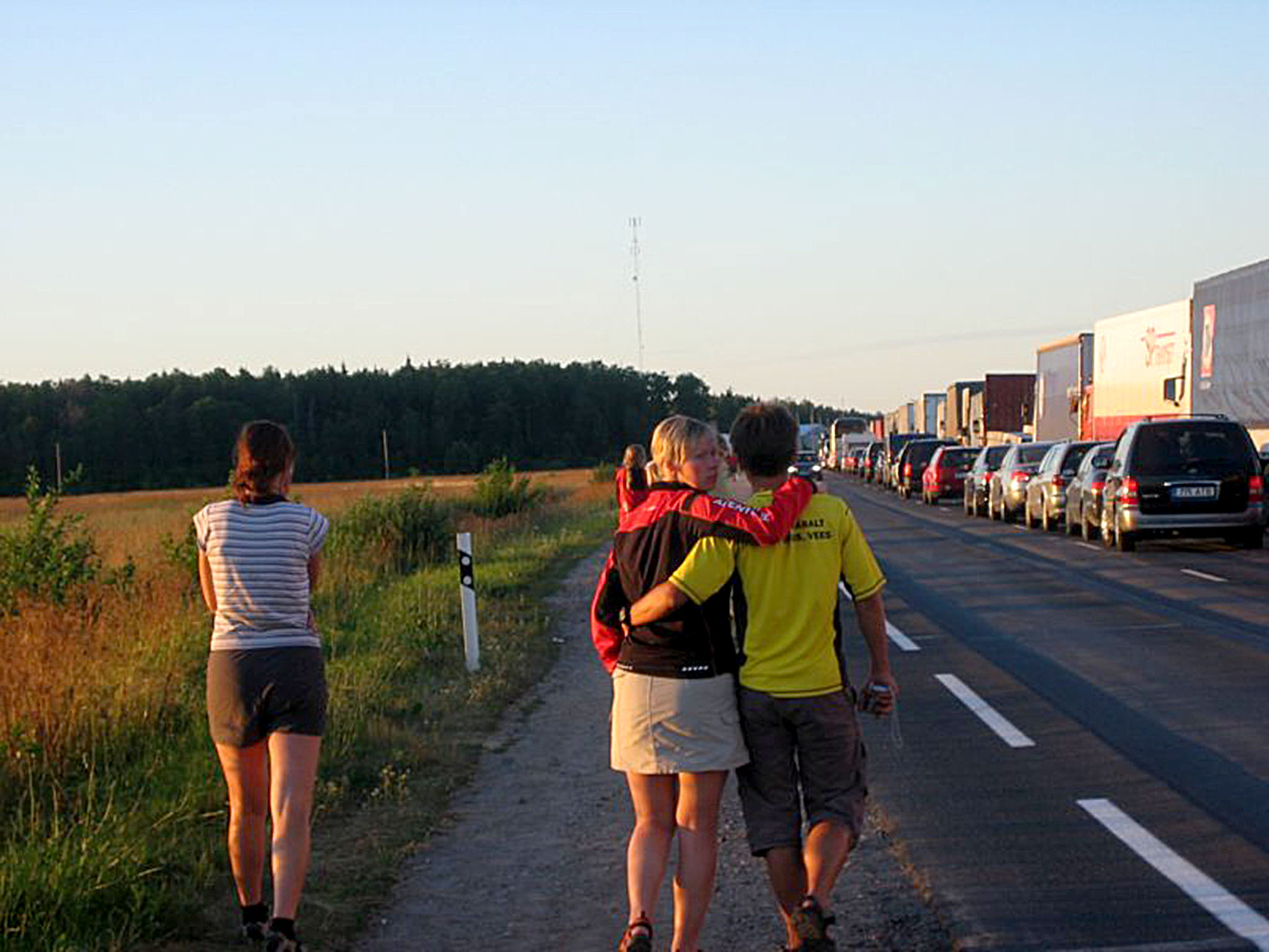 Pühapäevane ilm on ilus, päike paistab ja tagasitee kulgeb kiiresti. Tagasitee kulgeb tõepoolest kiiresti kuni ... Ikla piirile jõudes on seal lausa uskumatu järjekord – vähemalt kahekilomeetrine sõiduautode saba. Sellist asja pole enam aastaid näinud ja täielik arusaamatus valitseb meie hingedes. Asja lahendab telefonikõne sõber Aarele, kes avaldab ühe lühikese lausega tõe: „G8 kohtumine Peterburgis ja sellest tingituna kõrgendatud piirikontroll” ... koju jõuame pärast 5 ja poole tunnist piiriületust kell pool viis hommikul.