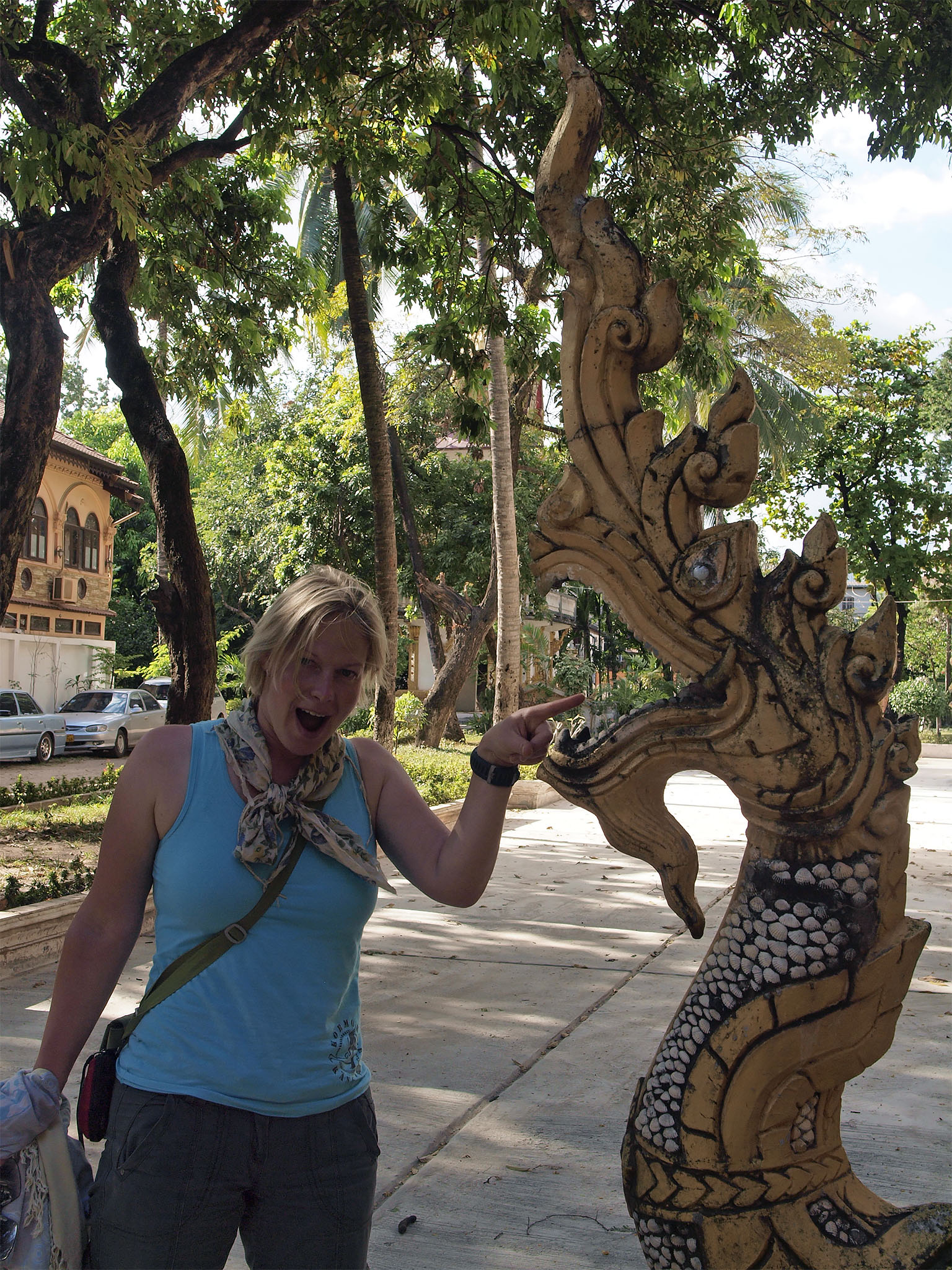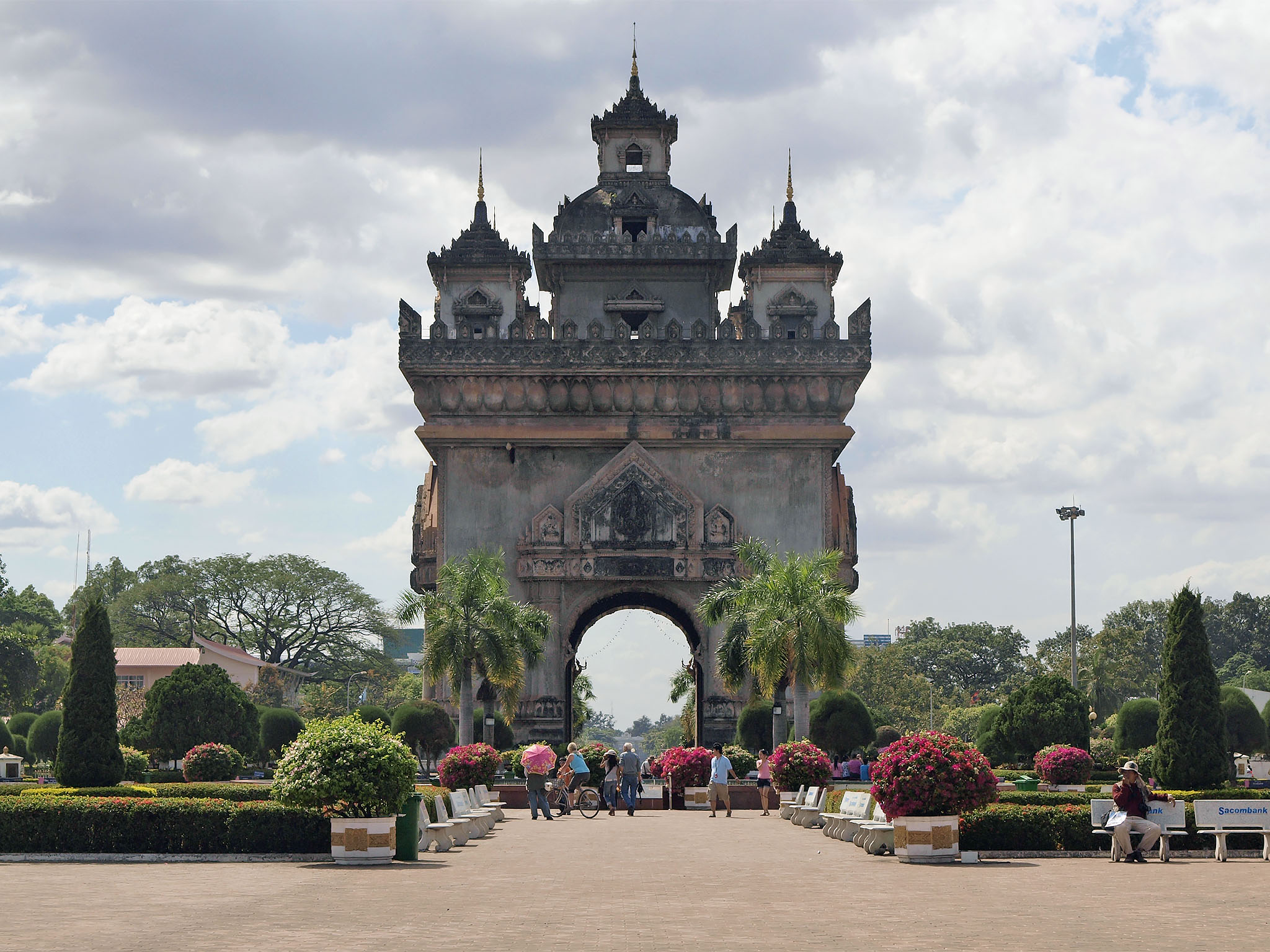 Vientiane ise on linn nagu linn ikka. Võrreldes Luang Prabang-iga muidugi mürarikkam, linlikum ja vähesemate vaatamisväärsustega. Aga oma klotsiosa saime siiski kätte – näiteks on linnas kohalik triumfikaar. Lisaks rajati parasjagu Mekongi kaldale uhket promenaadi, mis osaliselt oli juba valmiski ning kus õhtul käis vilgas kaubitsemine ning hilisem ööelu.
